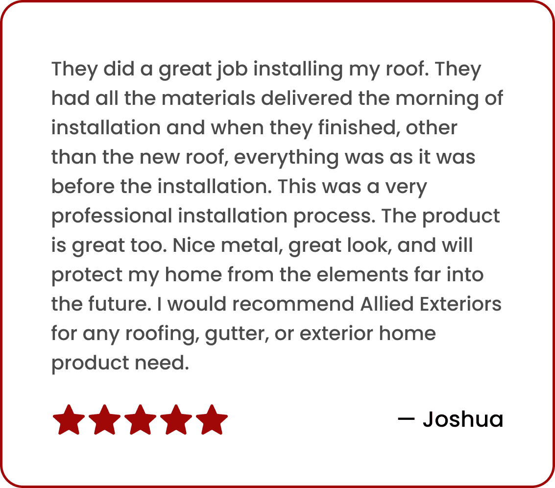 Your home deserves a roof that’s built for the long haul. We deliver expert installation, premium materials, and peace of mind from the first call to the final inspection, all backed by our satisfaction guarantee.